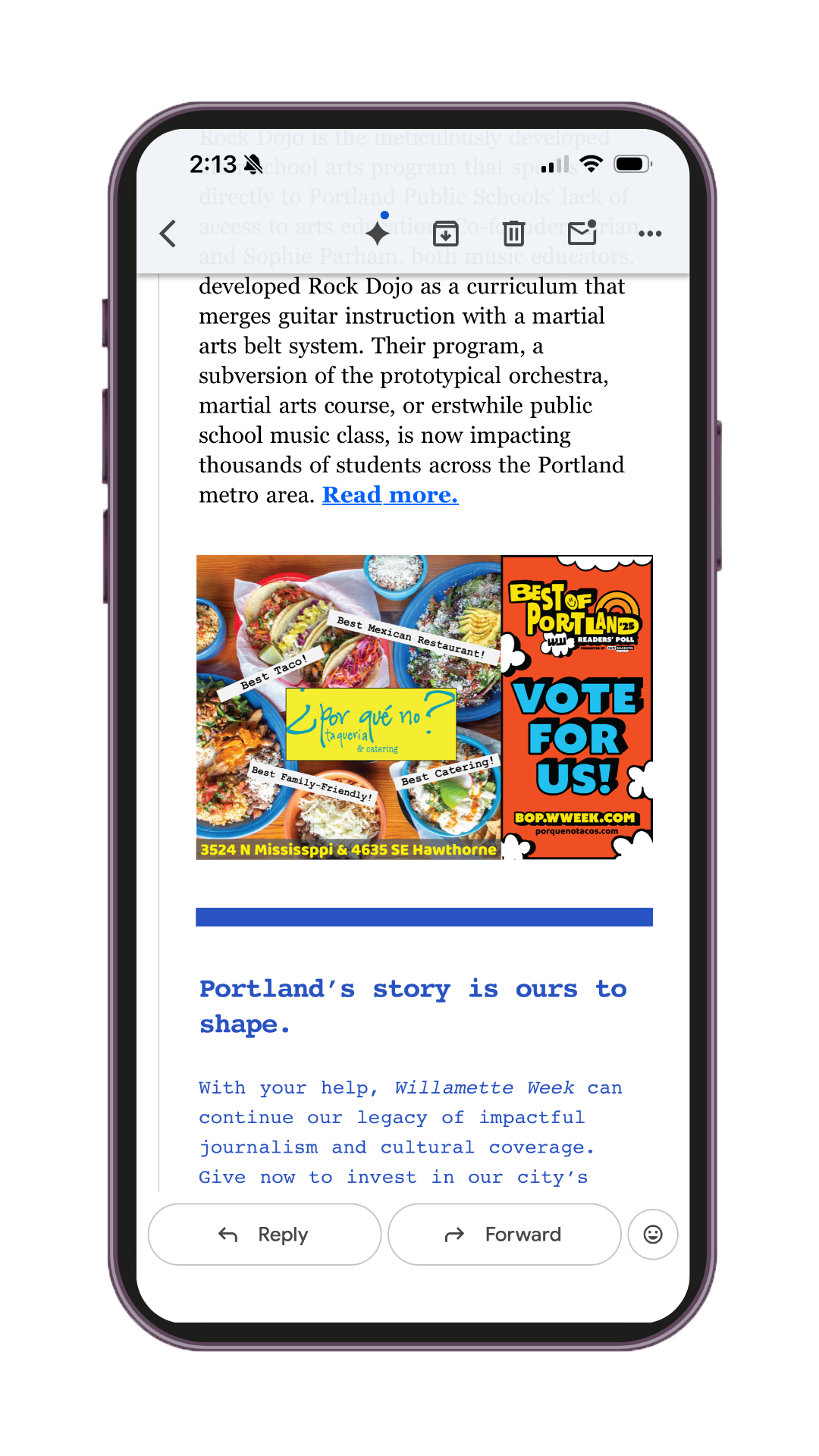 The Best of Portland Readers' Poll drives significant traffic, engagement, and conversation among local readers each year. We’re offering deeply discounted advertising packages (70% off rates!) in WW for clients pushing our readers over to the poll to nominate or vote for them.