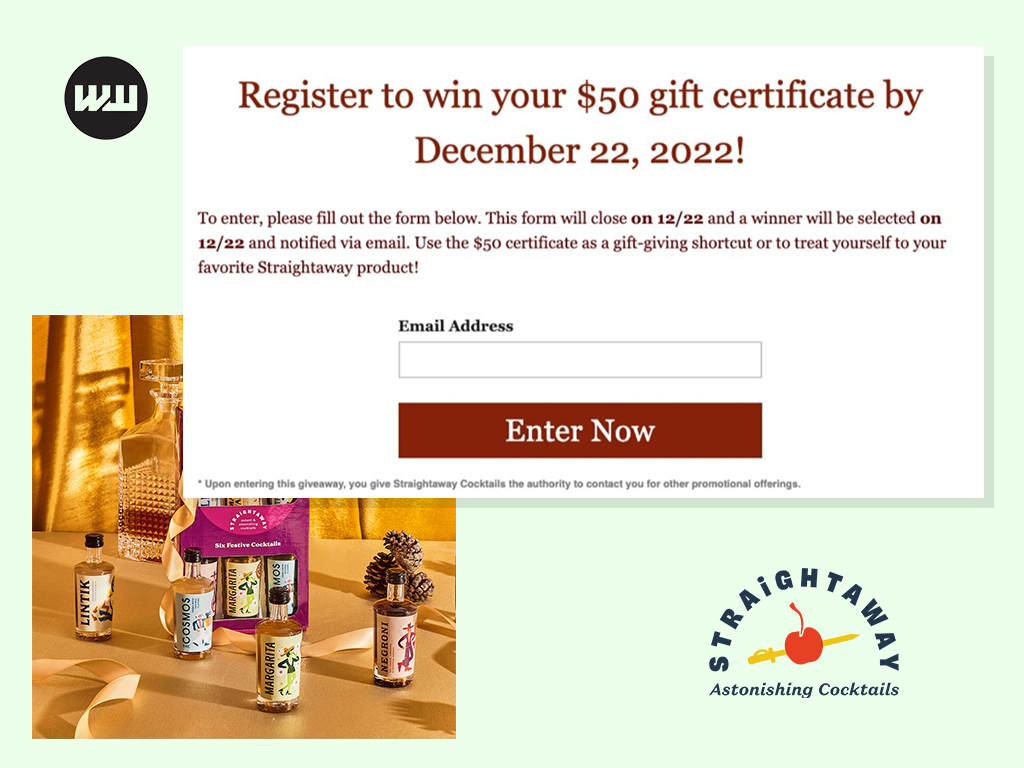 Each giveaway is a unique, limited opportunity for clients build their email list while engaging with WW readers in a fun, interactive way.