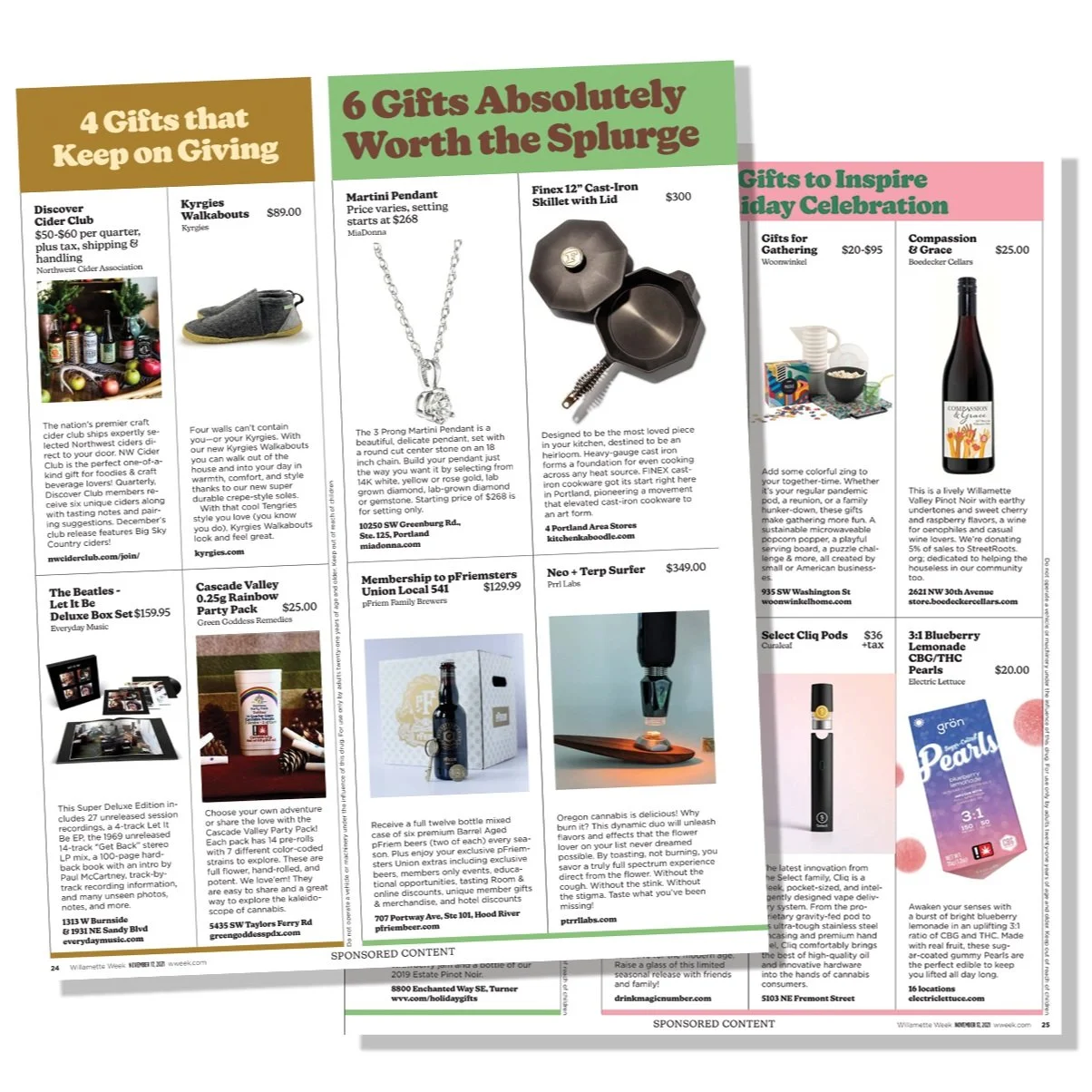 Company profile included in Shop Local advertorial on wweek.com, publishing on 11/20. We’ll promote this in links on wweek.com, along with newsletter and social promotion throughout December.